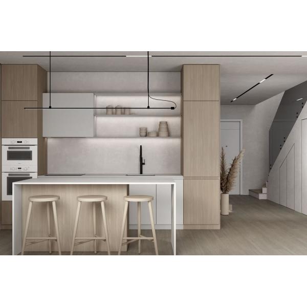 Classic Wood Grain PET Kitchen Cabinets: Bring the warmth and texture of natural wood to your kitchen with these wood grain PET cabinets. The realistic wood grain pattern adds depth and character to the cabinets, while the PET material provides durability and resistance to moisture and stains.